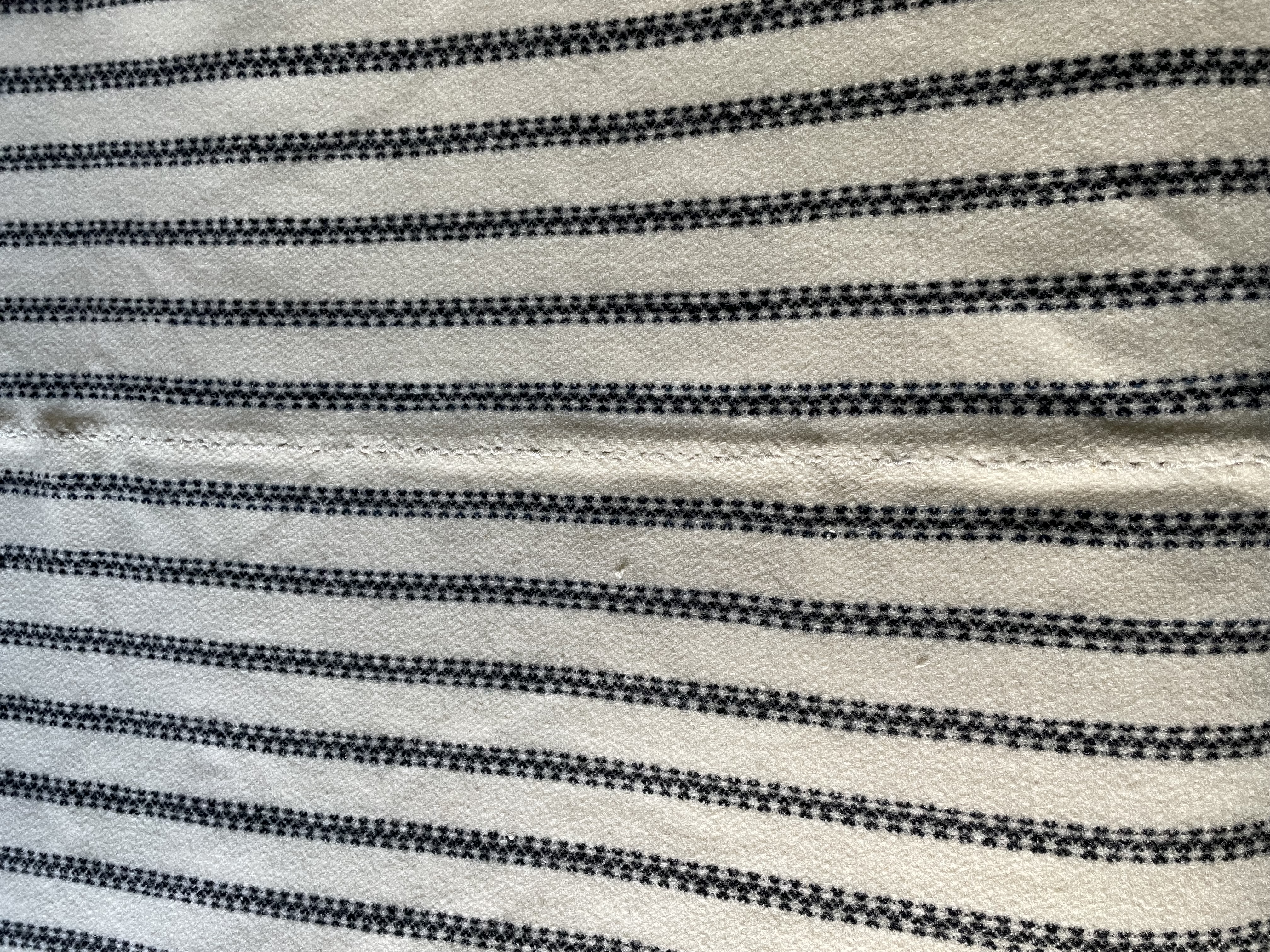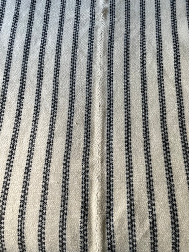 Rare early 19th Century narrow loom Welsh blanket in simple black and cream . Bolder Border