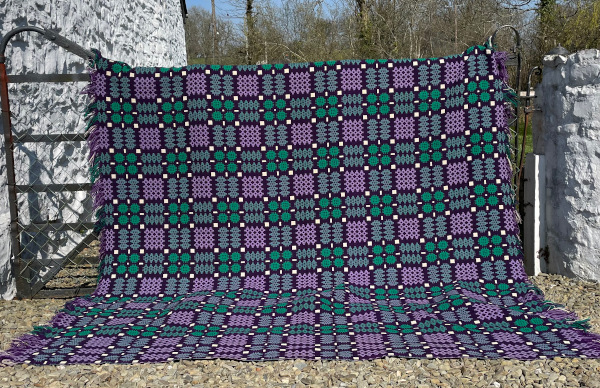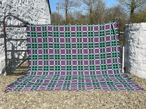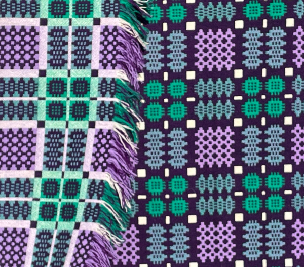 Lavender, purple and bright turquoise green combine in this vintage Welsh Doubleweave from the nineteen seventies.