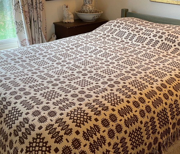 Vintage Welsh Tapestry Blanket in a rich brown with cream.