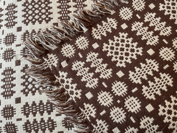Vintage Welsh Tapestry Blanket in a rich brown with cream.