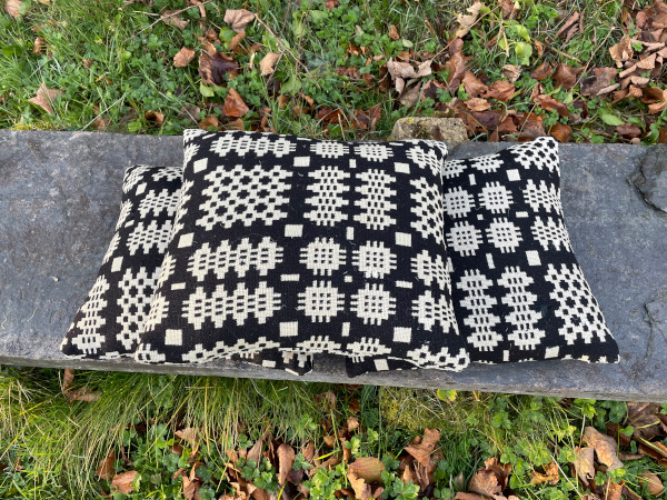Black and White Welsh Double weave cushions .