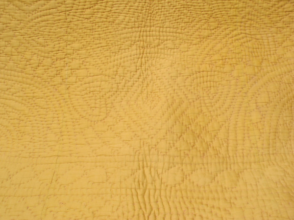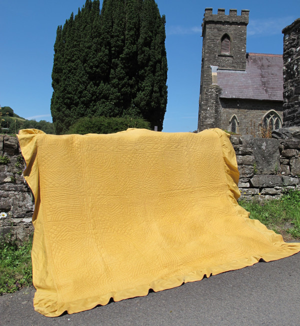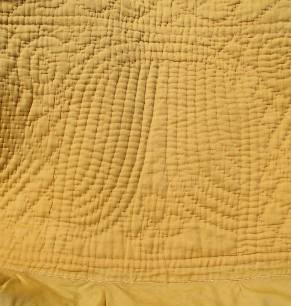 A product of the glamorous 1920's , the excellent Welsh quilting is quite intriguing , as one design appears as a window or even theatre curtains - look at the close-up , what do you think? Other more traditional quilting designs include spirals, hearts and fans.