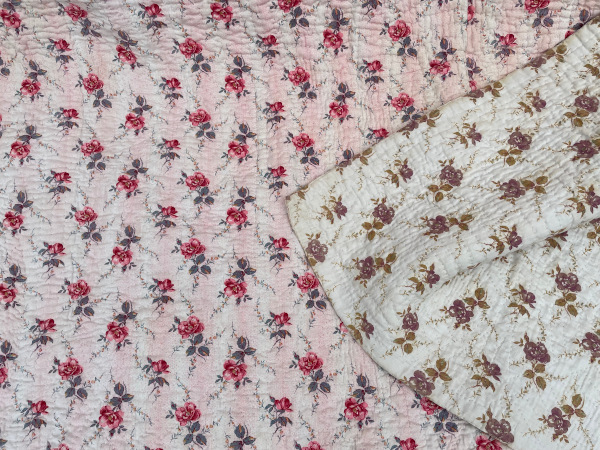 Lovely traditional Welsh quilting including large leaves and spirals .