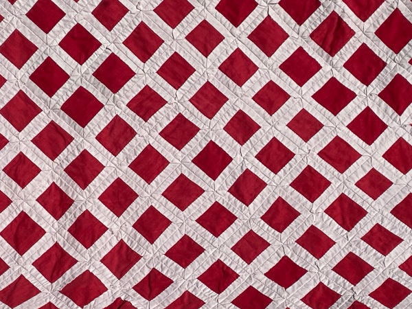 Turkey red and white patchwork . Individual red squares on point bordered in white.
