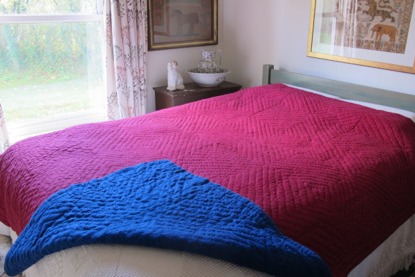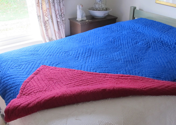 Welsh wholecloth quilt in two bold contrasting colours.