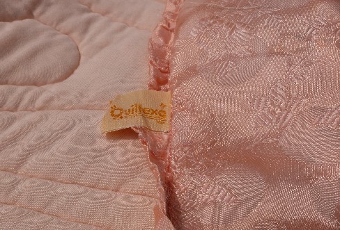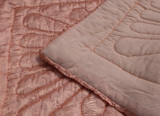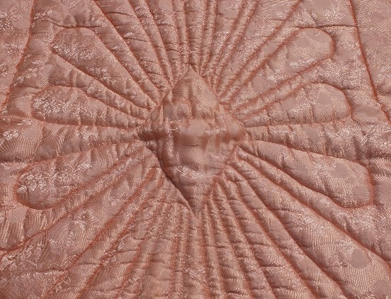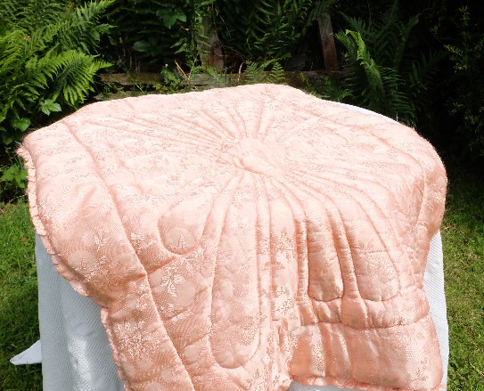 Pink embossed satin with a nonslip brush cotton reverse. Diamond Centre with 'sunburst' quilting .